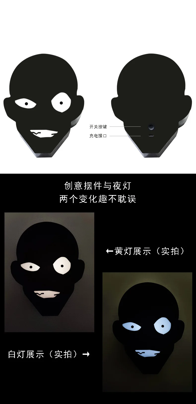 Popular Black Clothed Man Night Light Soft Light Eye Protection Funny Sand Sculpture Horror Bedhead Atmosphere Light Decoration