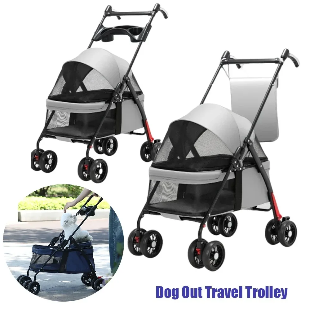Pet Stroller 4 Wheels Light And Breathable Little Dogs and Cats Dog Carrier Bearing Pet Lightweight Foldable Cart Outdoor Trave