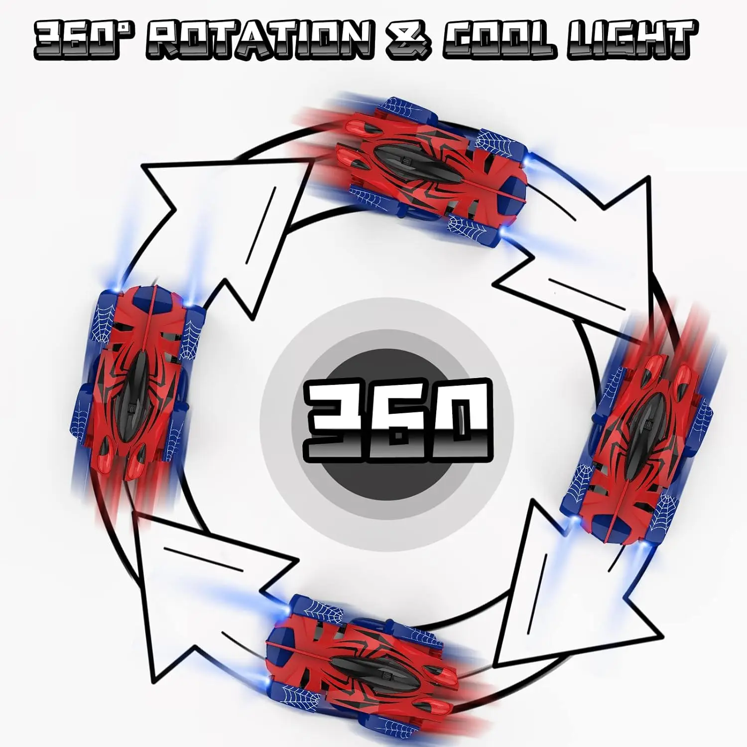 Wall Climbing Remote Control Car, 360° Rotating RC Stunt Car with Headlight, Rechargeable RC Car Toys for Kids